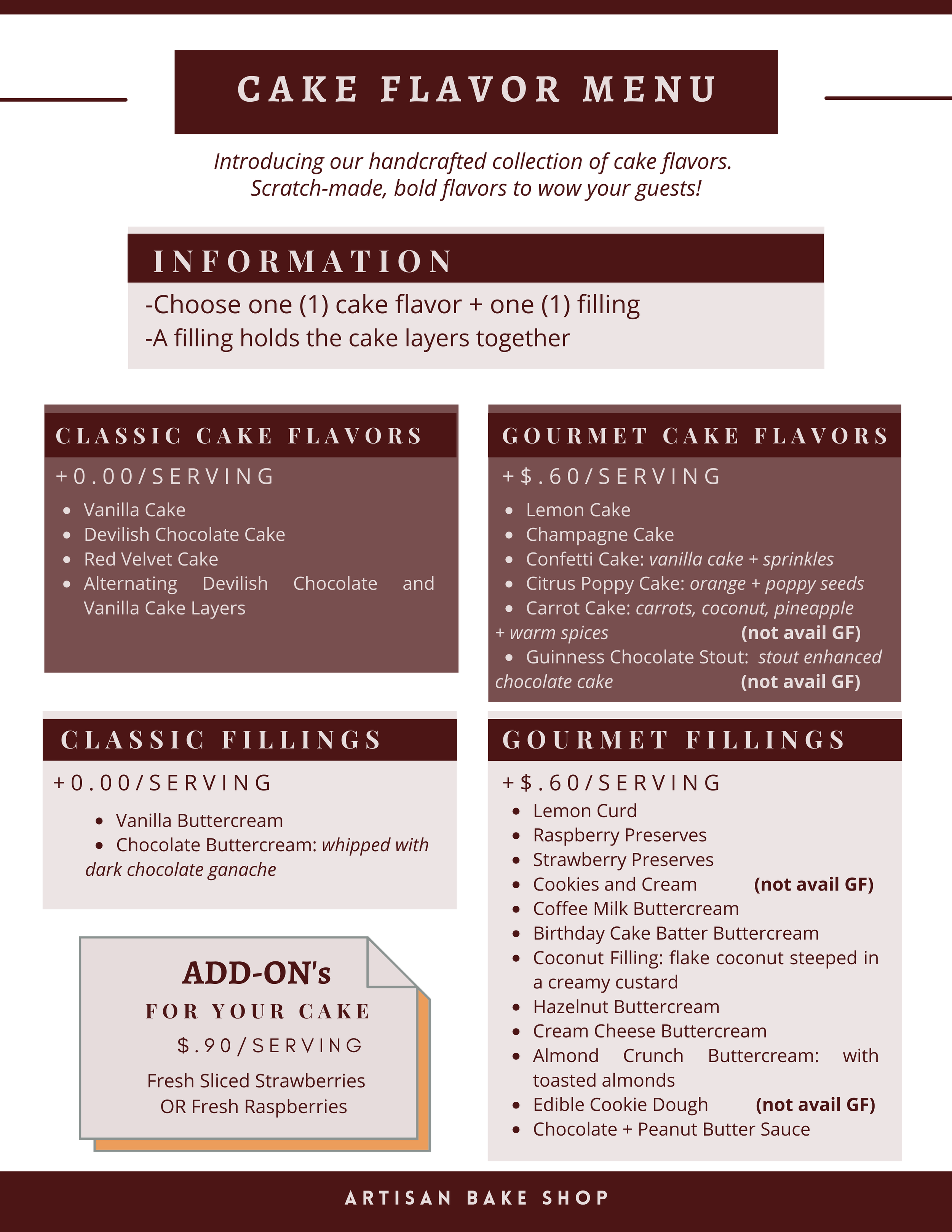 -Most Popular Gourmet Fillings: strawberry preserves, cookies and cream, raspberry preserves+lemon curd. Are just a few!